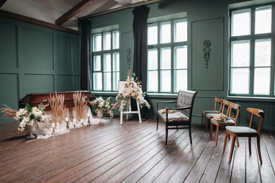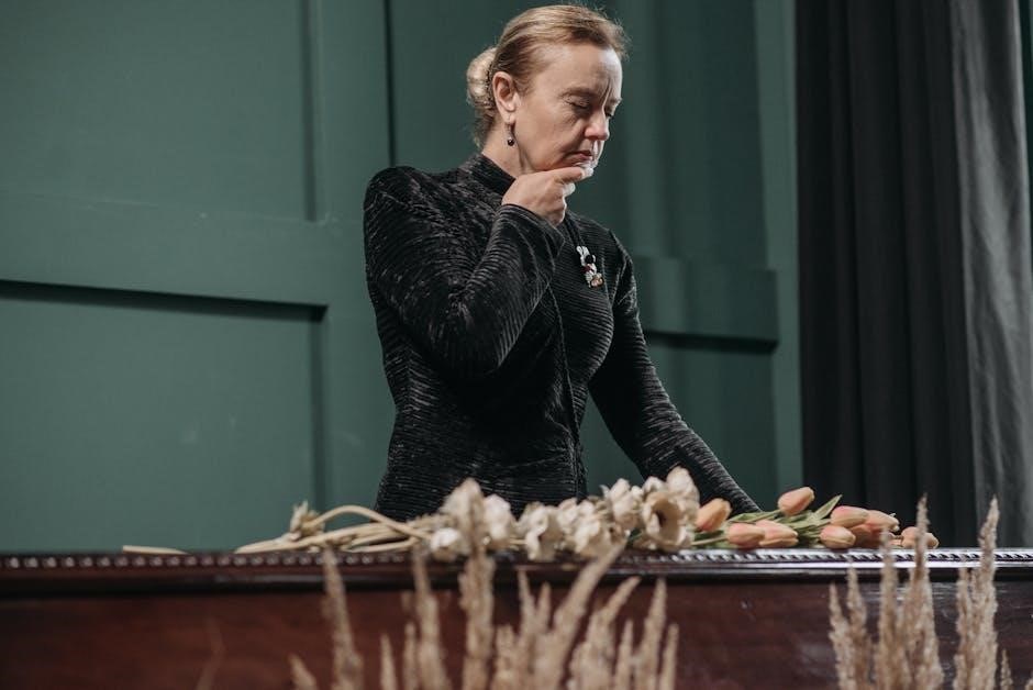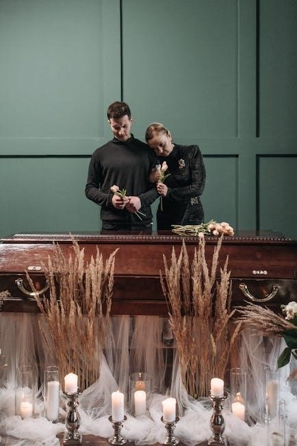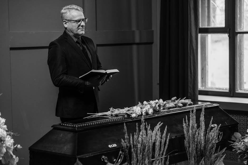 The manual’s sample outline for a man’s funeral typically begins with an opening prayer and hymn, followed by scripture readings often emphasizing themes of strength, provision, and faithfulness. A section for musical selections allows for personalization, reflecting the deceased’s tastes.