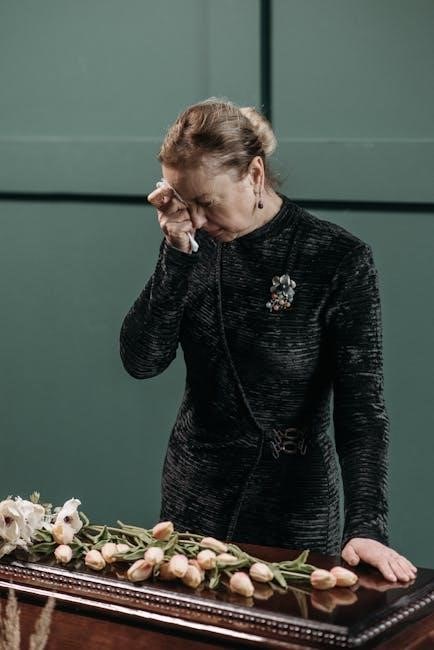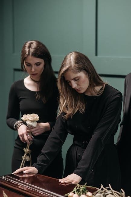 The manual includes sample service outlines for both men and women, offering a starting point for personalization. Pastoral care is central, ensuring the service reflects the deceased’s life and faith.